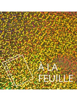 Feuilles thermocollantes « hologramme » or e pour une application à chaud sur textile. Ce film est idéal pour la customisation et la décoration textile.