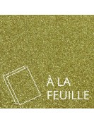 Feuilles thermocollantes effet « pailleté » brillant or pour une application à chaud sur textile. Ce film est idéal pour la customisation et la décoration textile.
