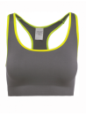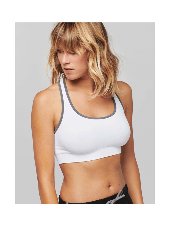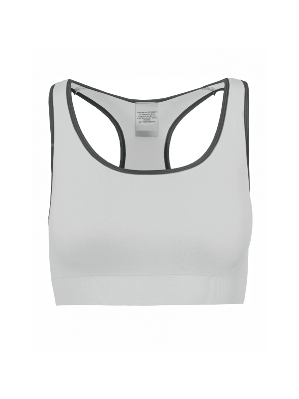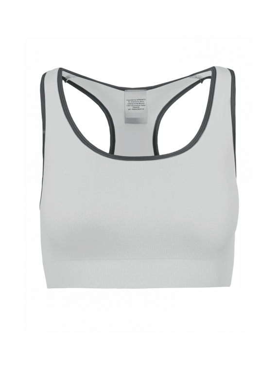 Bra, Lined Fabric Drink and Ergonomic Knitting for Excellent Retention and Comfort Thanks to its seamless design. Cup studied for multisport practice. Bias contrasted with neck and armholes. 94% polyamide / 6% elastane. Three sizes: XS / S, M / L and XL / XXL