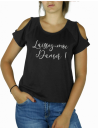 Women's t-shirt with point collar, 100% combed cotton (200gr / m2), T-shirt "let me dance, sing in freedom ..." reference to the song by Dalida in homage to the artistic world in this period of crisis due to the coronavirus.