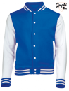 Jacket varsity teddy white sleeves. Get the perfect american look with this college jacket printed Rock'n Roll on the back !