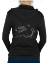 Women's jacket with black zipped hood, country pattern.Heavy jacket: 80% cotton - 20% polyester, 320 gr / m². Lined hood with drawstring, two pockets.The pattern represents boots with very fine arabesquesIn front, on the chest on the heart side: small boots with arabesques. Four colors of...