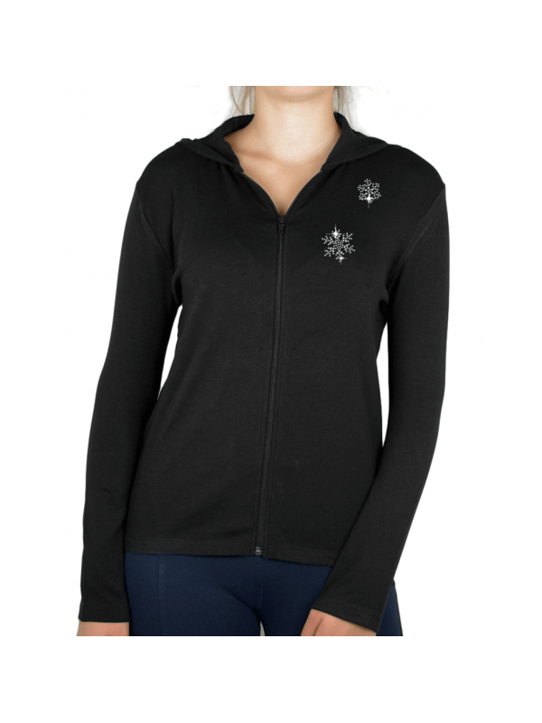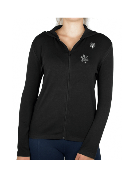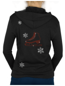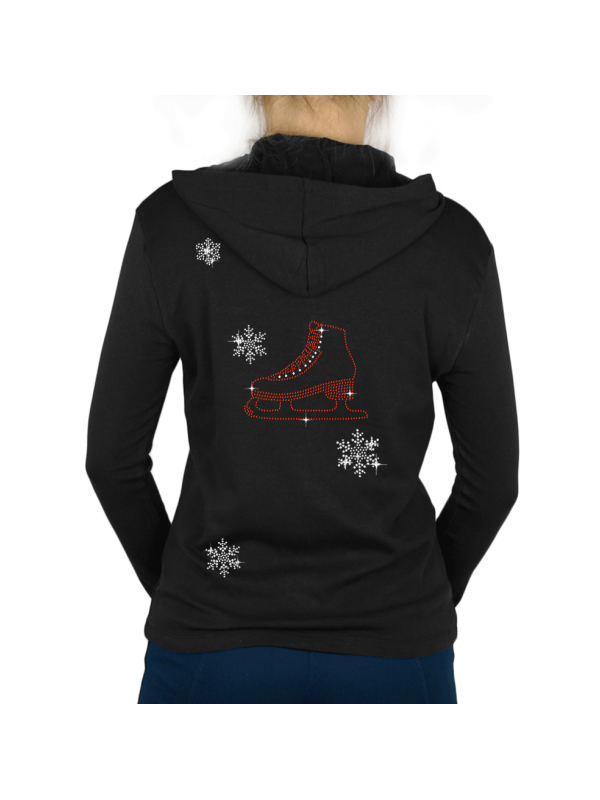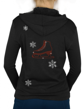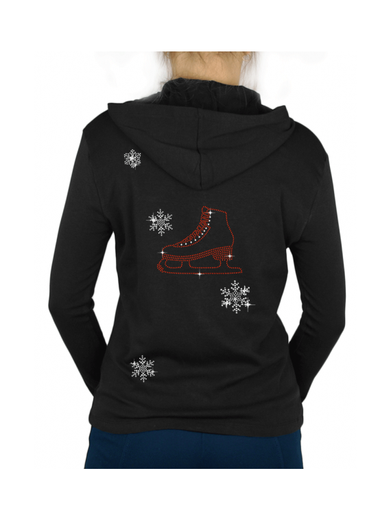 Ce petit gilet fin à capuche est un indispensable pour vos entrainements de patinage artistique !92% coton, 8% elasthanneMotif "flocons et patin à glace" en strass dans le dos.Petit rappel devant de flocons de neige, en strassTailles disponibles : Du T1 au T5 Trois couleurs possible de strass:...