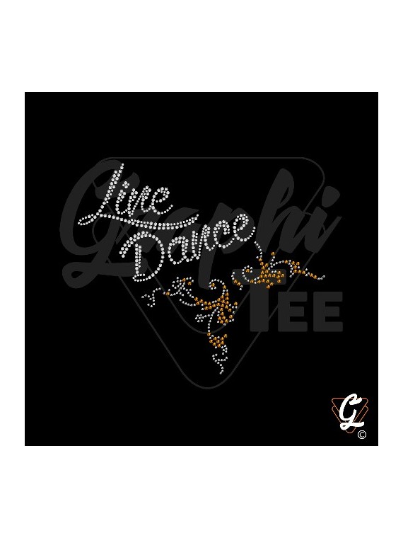 Women's t-shirt round neck wide, cut in the shape of a circle with the bottom of the t-shirt slightly rounded. Loose, fluid T-shirt, very comfortable to wear. The rhinestone and sequin pattern represents a guitar and a hat with Country music.