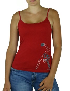 Cotton / elastane adjustable thin straps tank top with rhinestone pattern of rhythmic gymnastics (ball)