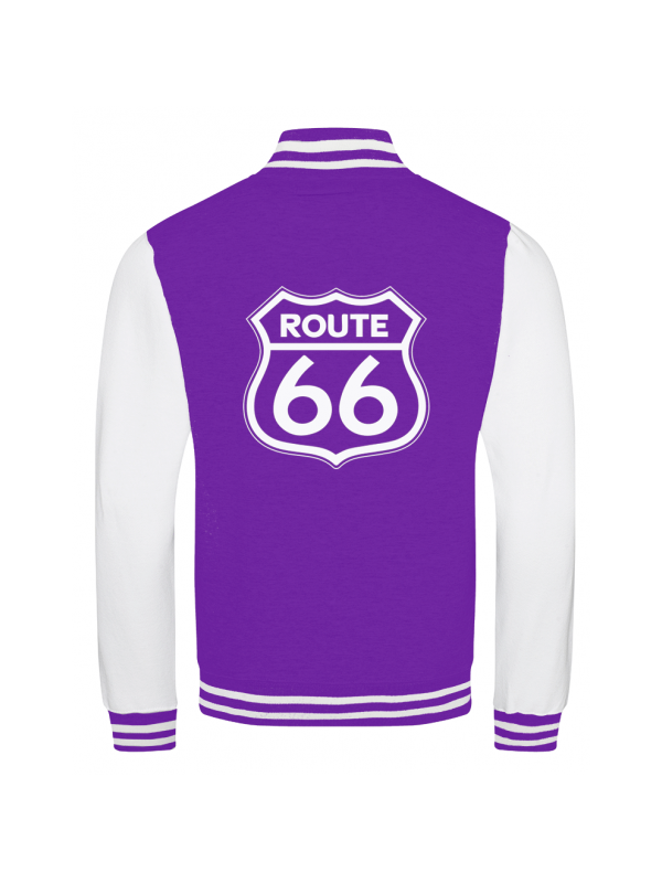 Jacket varsity teddy white sleeves. Get the perfect american look with this varsity jacket and the jacket is printed with the Route 66 symbol