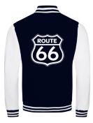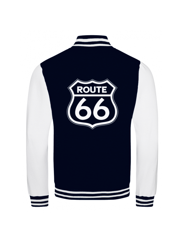 Jacket varsity teddy white sleeves. Get the perfect american look with this varsity jacket and the jacket is printed with the Route 66 symbol