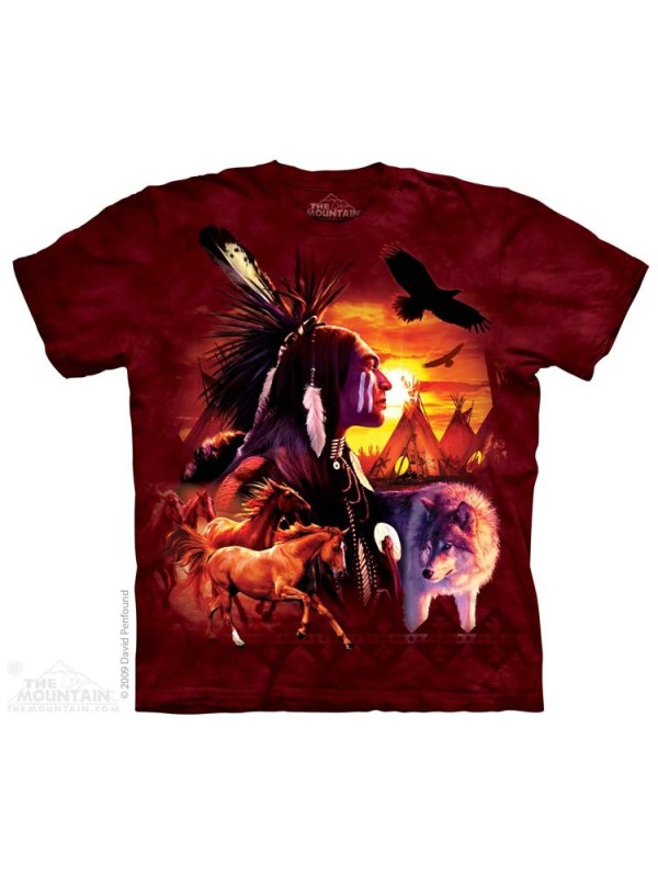 Tee-shirt américain, impression d'une indienne invoquant l'esprit des loups devant sur fond tie-dye ou marbré. T-shirt de haute qualité, il a une très bonne longévité. Teint à l'aide de colorants organiques, imprimé avec des encres à base d'eau. Pensez à bien vérifier les mesures des tailles du...