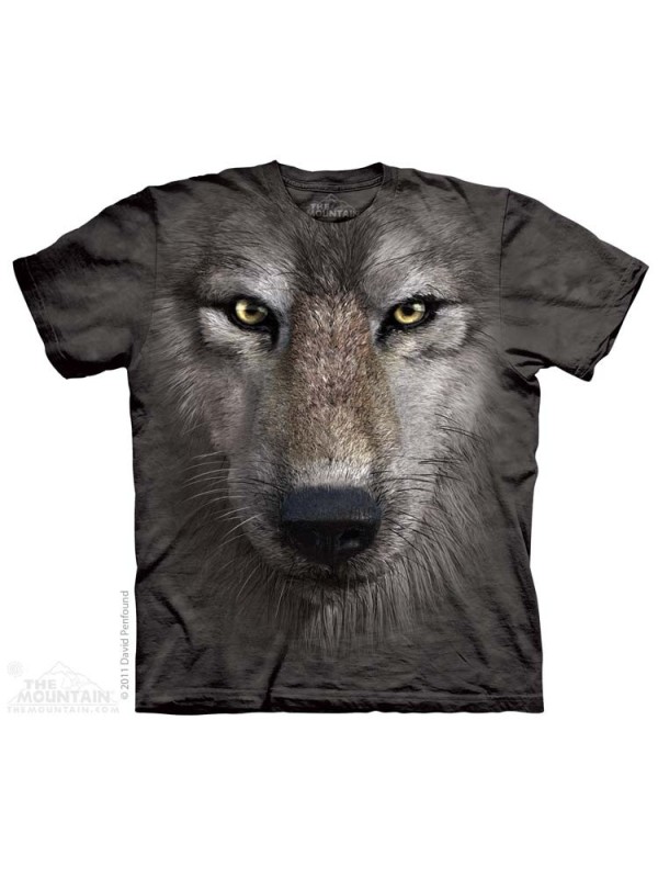Tee-shirt américain,sérigraphié d'un portait de loup devant sur fond tie-dye ou marbré.