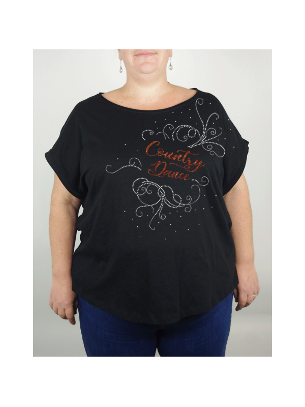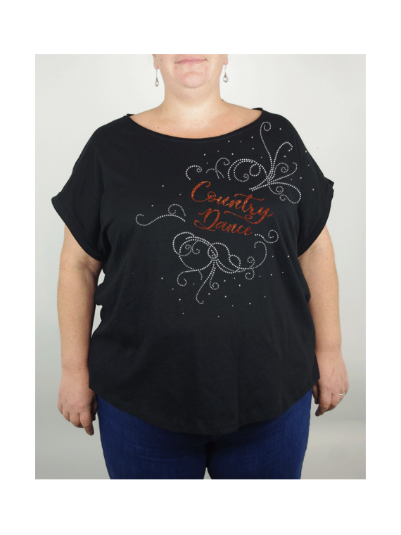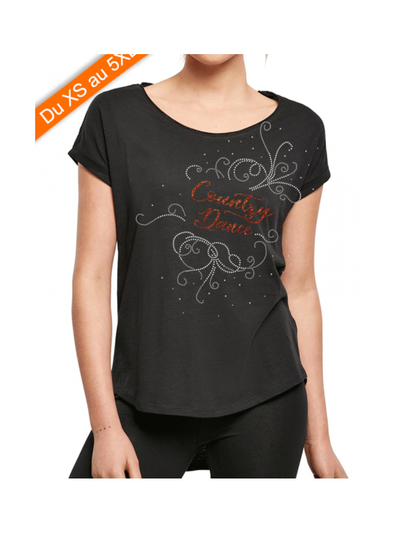 Motif "COUNTRY LINE DANCE " en Strass et paillette sur tee shirt SLUB TEE de couleur VERT BOUTEILLE Le motif est en clous DORE et ORANGE Ce tee shirt est 100% coton, disponible en noir ou blanc de la taille XS à la taille 5XL Retrouvez le pantalon assorti ici et les autres articles avec le même...